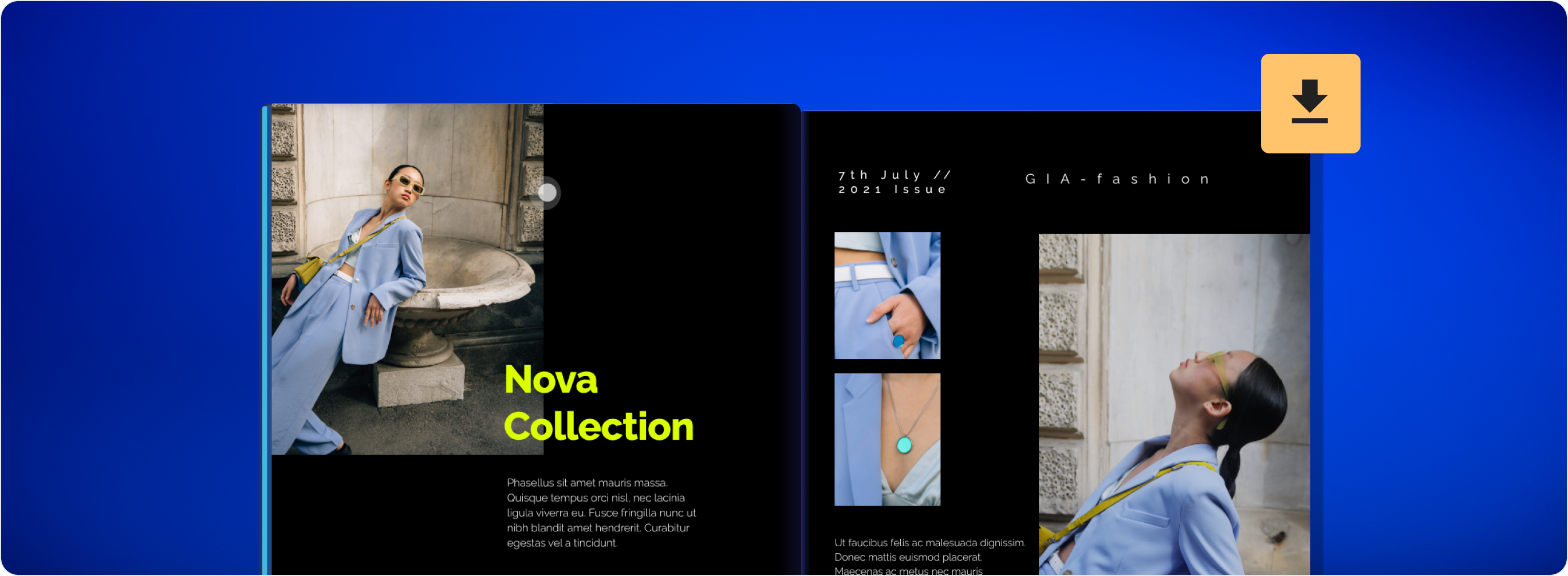 When downloading a PDF for print, all interactive elements, like links, buttons, or videos, are automatically removed. This ensures a clean, static file that’s ready for professional printing, without visual distractions or non-print elements showing up on the final document.