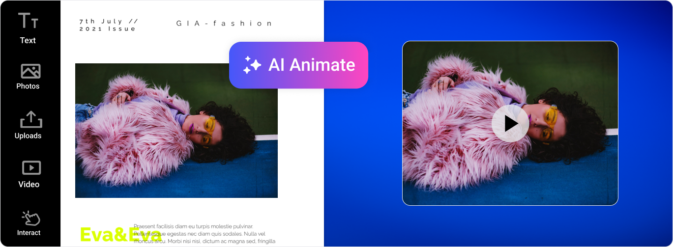 Bring static visuals to life by generating short videos from a single image using Google Veo. Pick an image, and get an animated clip you can use in your designs.