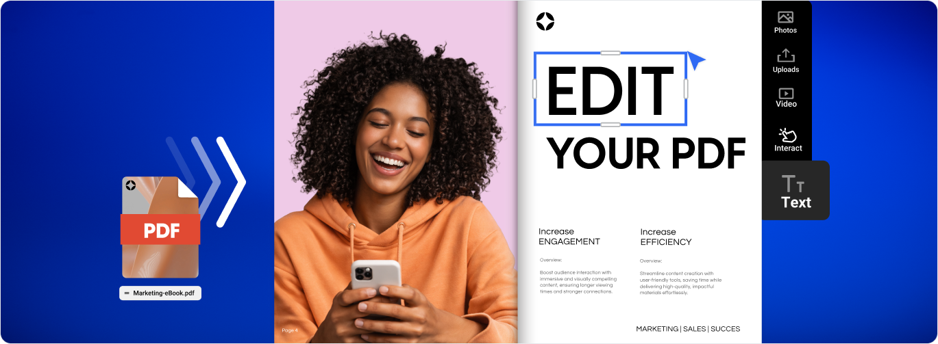 Uploaded PDFs can now be edited directly inside Flipsnack. Make quick text updates or small adjustments without needing a designer or access to the original design files, making it much easier to handle last-minute changes.