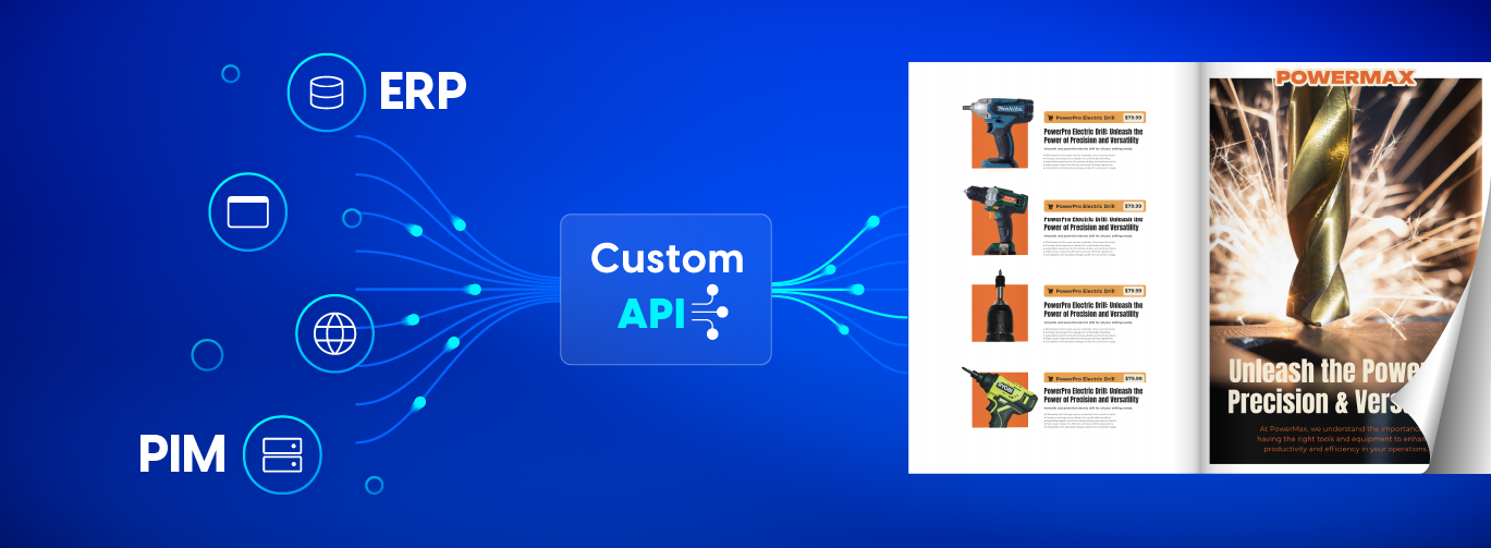 Sync and import product data directly from your internal systems by connecting your ERP or PIM to Flipsnack