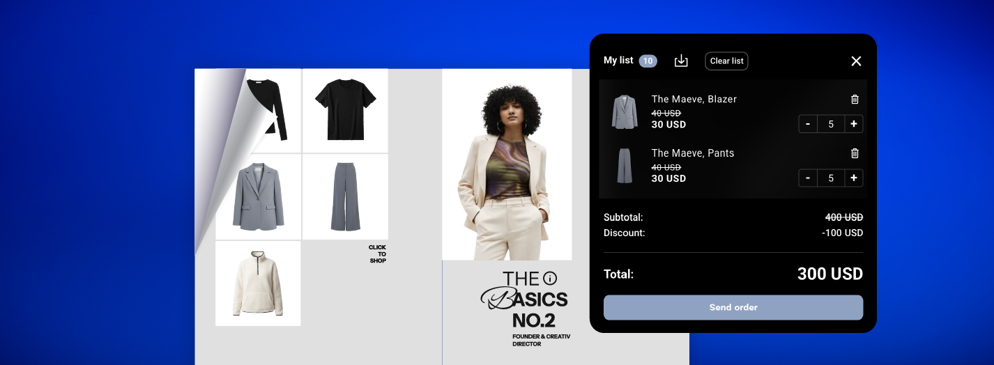 Catalog viewers can see discounted prices directly in the product list, along with a helpful pricing summary showing total amount, discount, and final price.