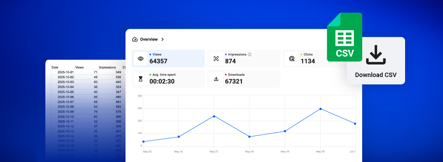 You can download flipbook overviews and page-level statistics as a CSV file to track and share insights with your team.