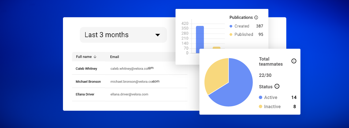Offers complete visibility into how your organization and teammates use Flipsnack. Track activity across workspaces or the entire company to monitor adoption, understand usage patterns, and keep teams aligned.